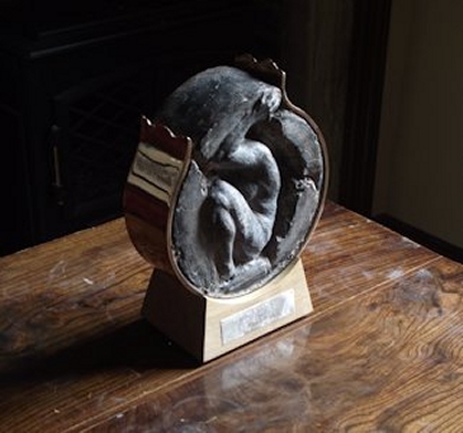 This sculpture is a prize for essays concerning contemporary slavery. It was handed over by the Master of Magdalene College, Dr Rowen Williams.